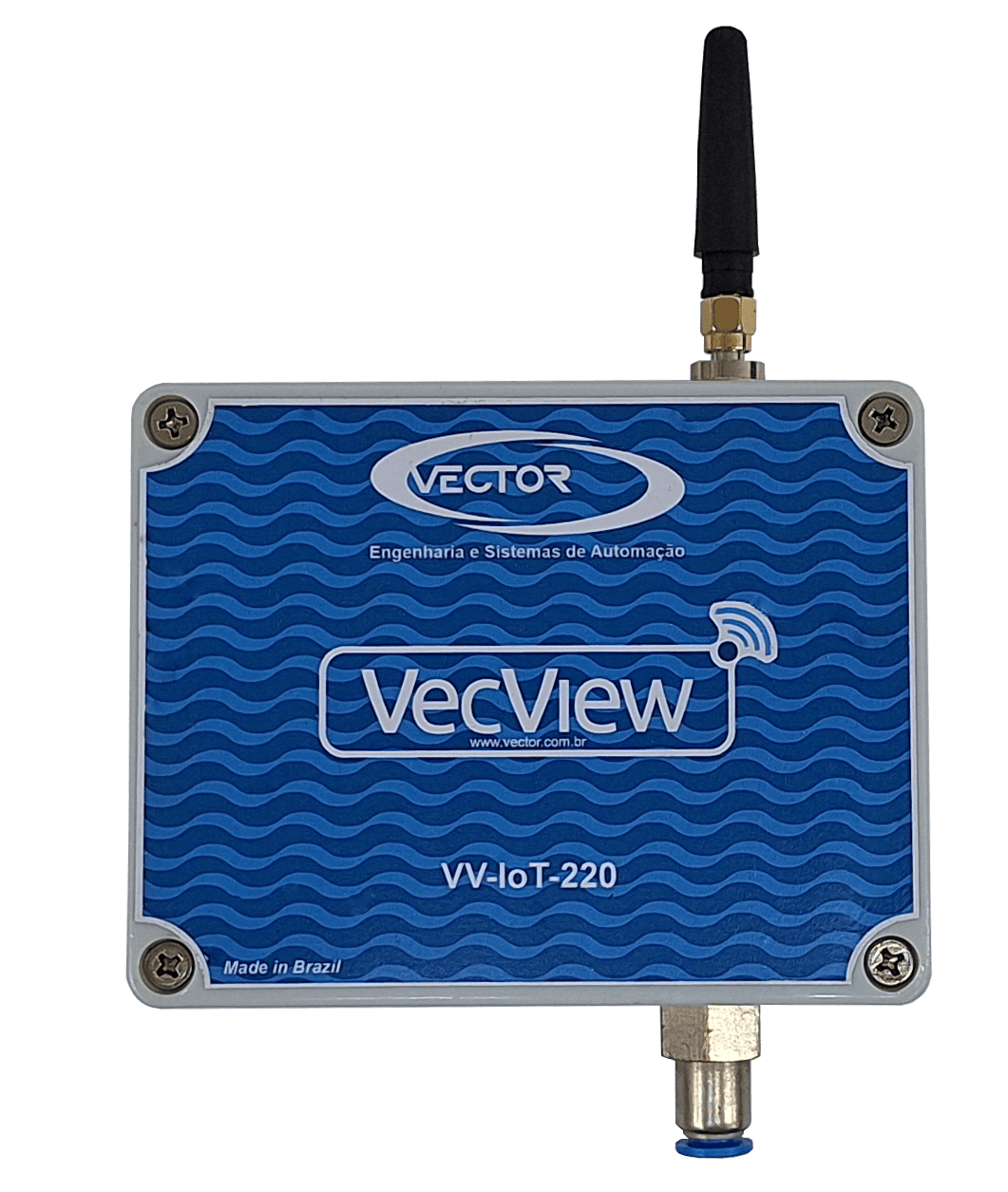 O VV-IoT-220, desenvolvido pela VECTOR, permite efetuar a telemetria da medição de pressão (sensor incorporado), sensores analógicos (4-20mA), contagem de pulsos (vazão, fluxo etc.) e sinais discretos para identificação do estado de funcionamento de equipamentos, alarmes, entre outros.