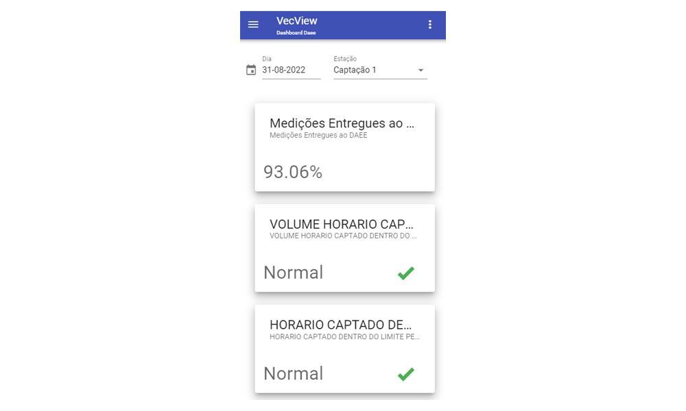 O VecView consiste em uma plataforma IoT (Internet of Things), suportada em tecnologia de mapa digital georreferenciado (GIS), para apoio a gestão de informações de sistemas e processos distribuídos, como gestão em sistemas de água e telemetria outorga captação DAEE SiDeCC-R.