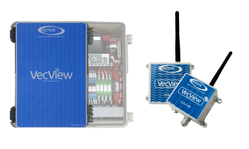 - Servidor VecView: Sistema central que realiza a aquisição de dados de todos os dispositivos/UTRs da aplicação, processa, armazena os dados em um banco de dados e disponibiliza interface para visualização e análise das informações através de recursos gráficos, intuitivos e georreferenciados, em mapa digital acessados através de navegador de internet universal;